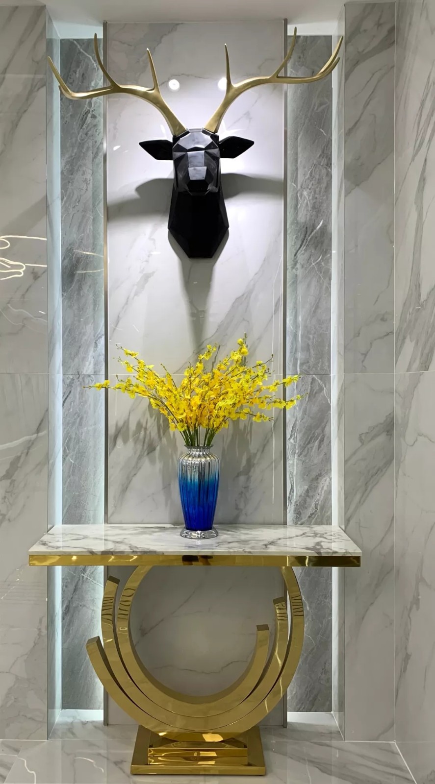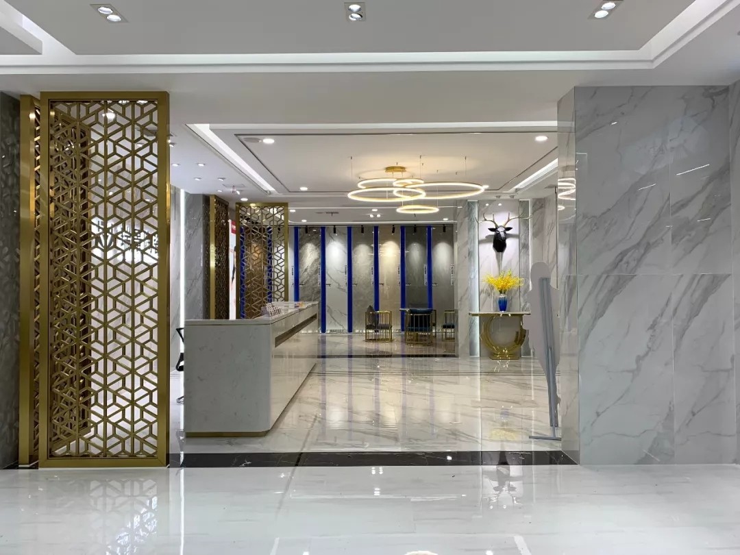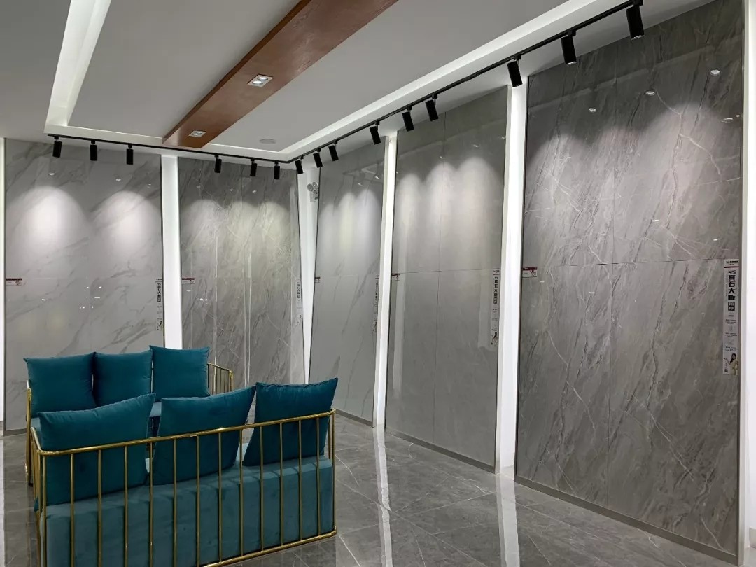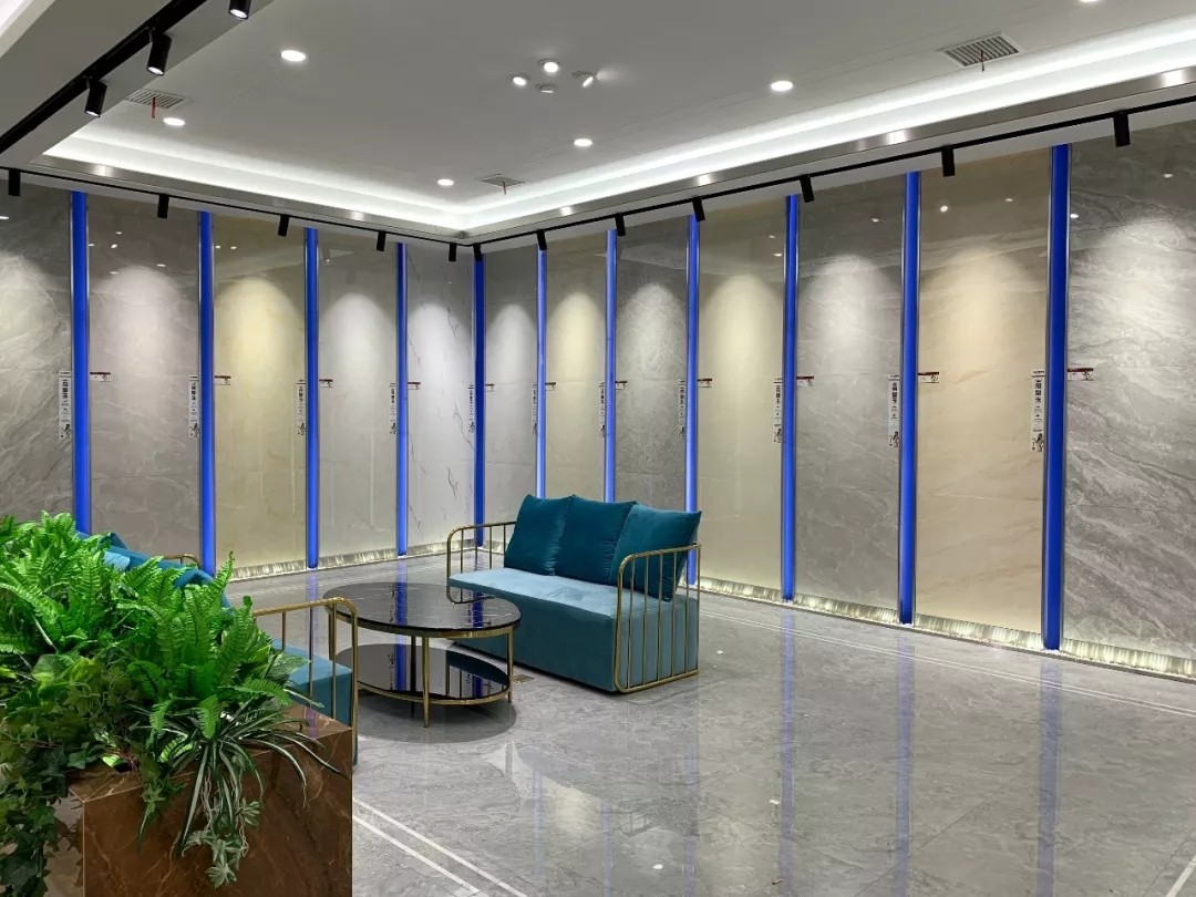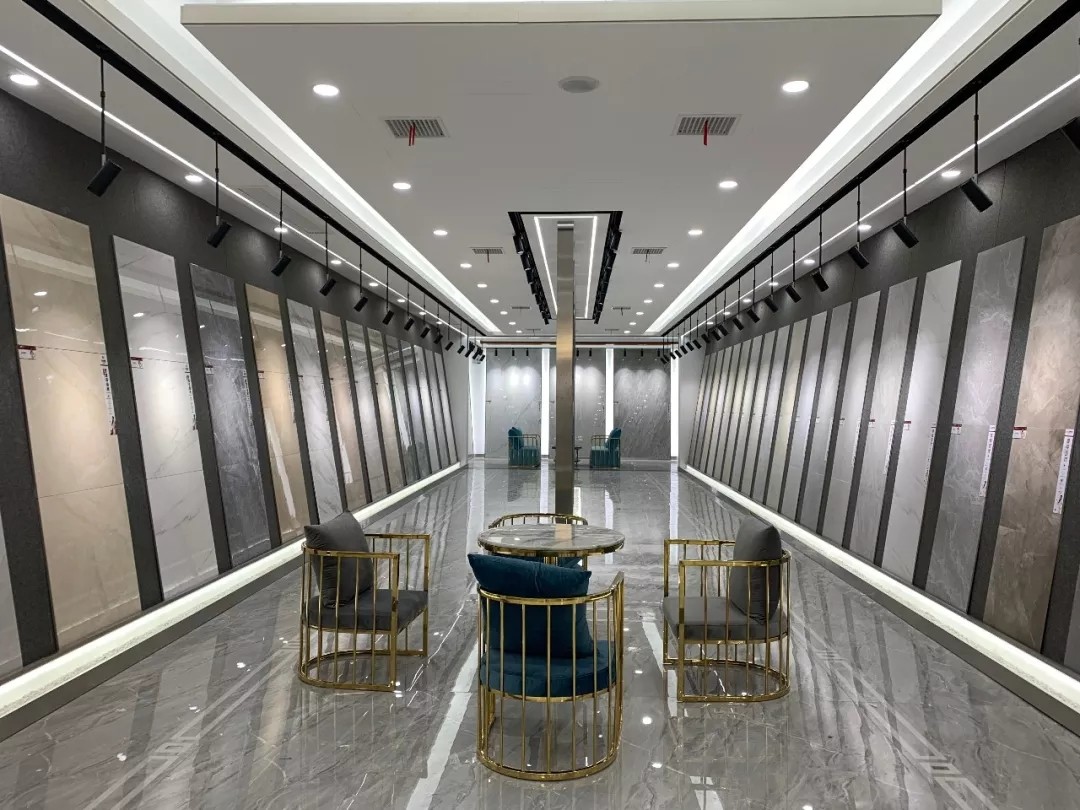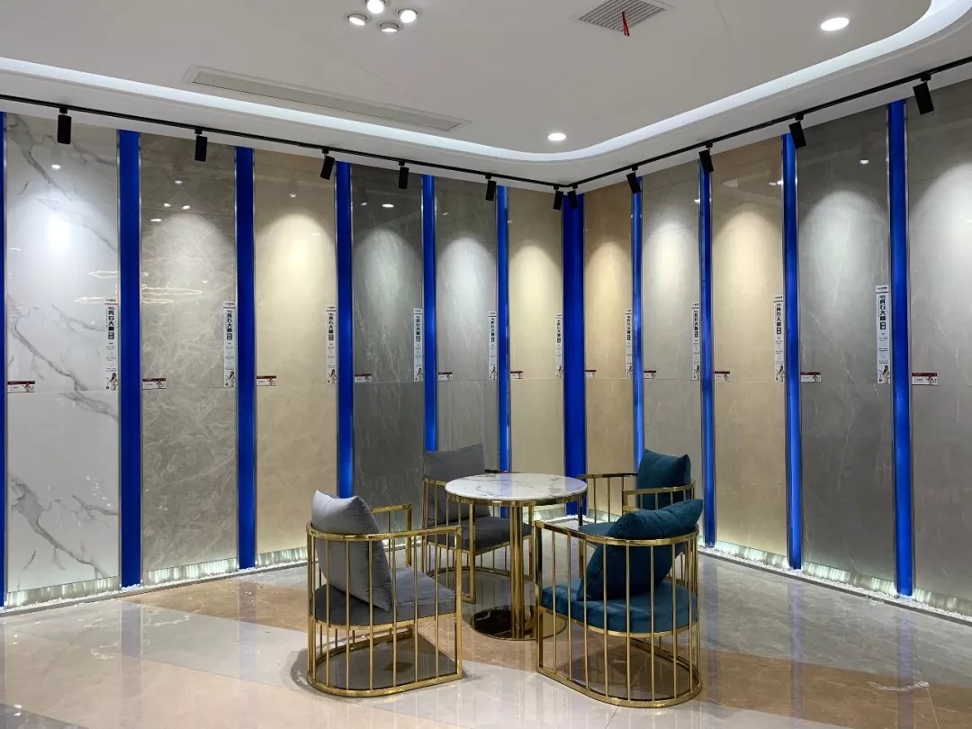 大板瓷砖是近年流行的产品,其特点灵活多变、设计多样,满足大空间应用,深受到业主的喜爱。瑞景陶瓷展厅,大胆运用大规格瓷砖上墙铺贴、地面铺贴,让整体空间更具高端大气。